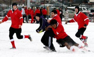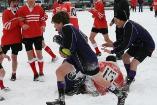 Tigers Rugby Football Club opened the 2010 season against the State Champion Denver East HS Angels on a snowy East HS field. The East A side dominated the Tigers 22-0 with quick, and ultimately lethal backline players that reset like a whip, overloading the Tigers repeatedly. Tigers Rugby Captains Albert Whitemore and Patrick O’Connor led the powerful pack including Early College HS’s Daniel Sargeant; Jake Gossman, Walker Prieb, Jake Boselli, Oliver Smith, Sam Quinn, Matt McLean, and Rob Nees from Holy Family HS, and Andrew Hutchinson and Jared Riemer of Standley Lake HS.